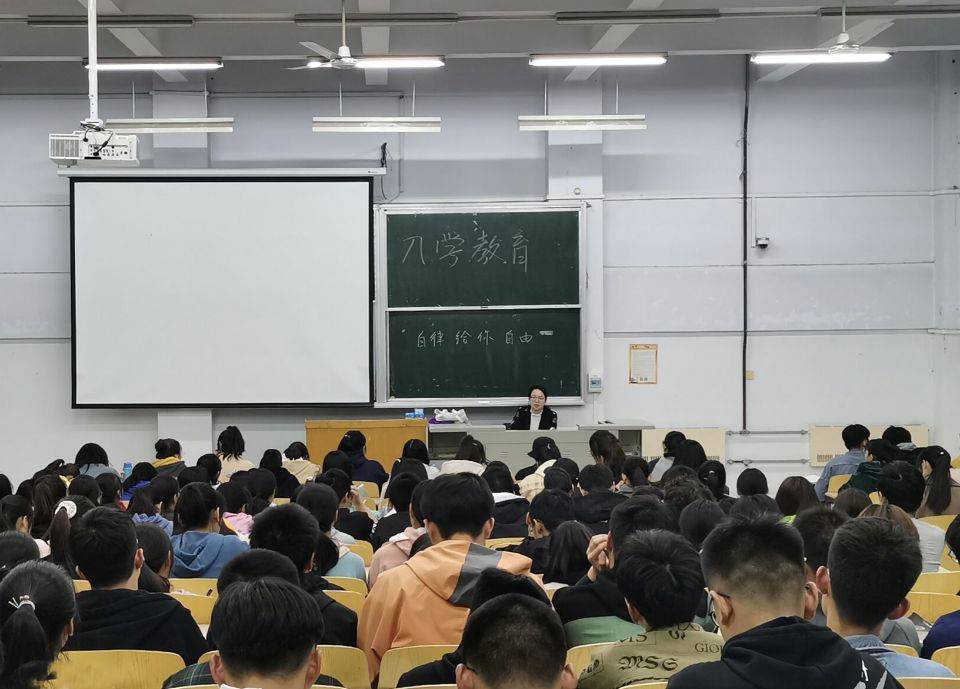 张东琳老师强调,大学生活要以学业为重,身为学生,学习是第一位的,同时校园各种评优评先都是以不挂科为基础,所以要积极适应大学生活,主动学习,对自己的学业负责。对于刚进入大学首次接触社会的同学们由于缺乏社会经验,经常被各种不法分子忽悠进而实施诈骗,因此同学们一方面学好知识的同时,更应该提高警觉心保护好自己。最后,老师以“自律给你自由”结尾,唯有足够的自律,才有足够的自由,希望同学们都能养成自律的习惯。