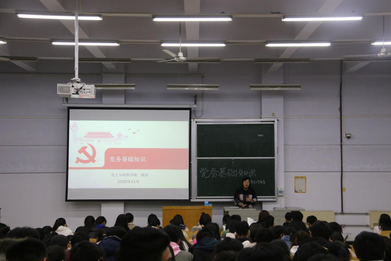 党务基础知识培训会期间,胡泊老师首先从当代大学生为什么加入共产党谈起,阐述了党的指导思想、党的纲领、党的章程等基本党务知识,全面解读了十九大,指出当代大学生肩负的历史使命,要为实现“中国梦”奉献终身。随后,详细阐述了大学生申请入党条件以及如何撰写入党申请书。