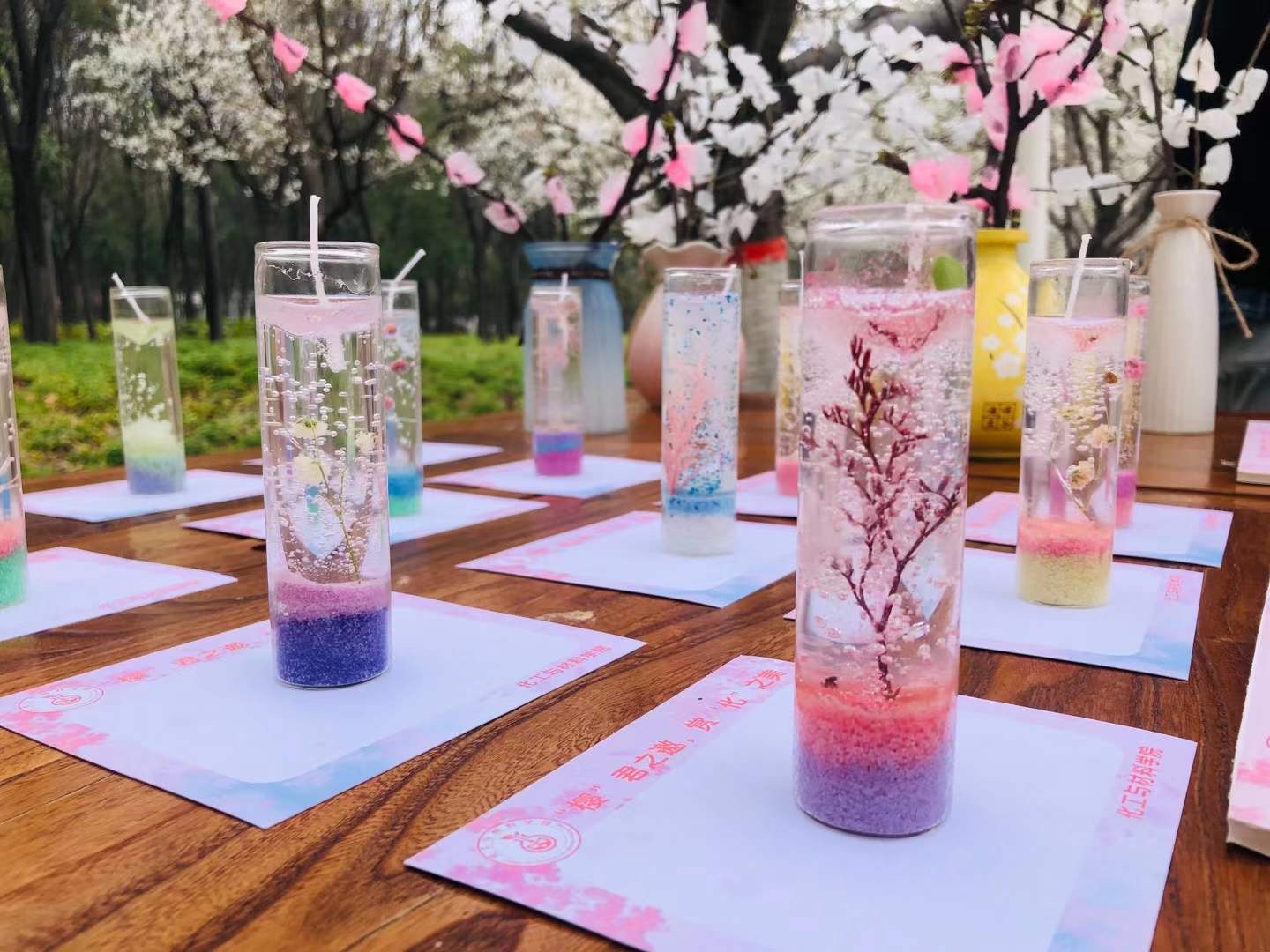 此次樱花节,我院两个社团:潮尚社和啊啊啊啊科学实验站,结合学院专业特色,在樱花大道举办了“樱”君之邀,赏“化”之美为主题的樱花手工艺品展示,有各式各样香气扑鼻的香薰蜡片、造型各样且实用的樱花手工皂、绚丽多彩的浮游花瓶、清亮透明的樱花树脂、美观且护肤的樱花唇膏,别有一番风味,吸引了大批赏樱者的注目。同时还配以“樱”君之邀,赏“化”之美的展板,详细介绍了各种手工艺品制作流程、制作原料和使用功效,让同学们感受到化学的魅力。