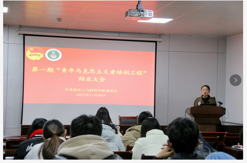 2021年11月29日晚18:00,我院于化材楼S302会议室举行第一期“青年马克思主义者培训工程”结业大会,主持人为第一期青马班班长贾慧,团委书记于笑寒及第一期、第二期青马班全体成员参加。