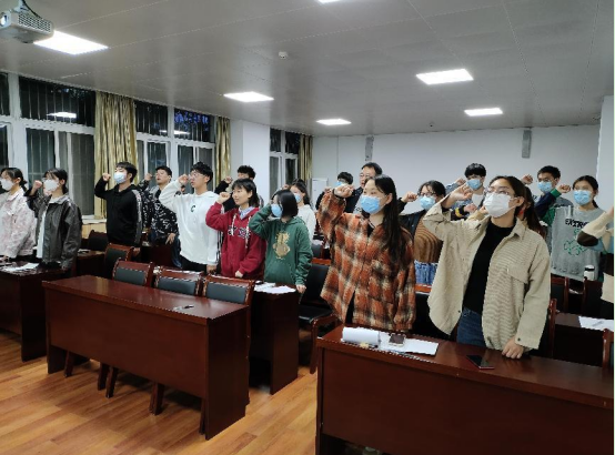 会议伊始,第二期青马学员全体肃立奏唱中国共产主义青年团团歌,并重温入团誓词。宣誓完毕,第二期青马班团支书庞亦斐从“回顾中国共产主义青年团的百年风雨兼程”“团员证的发展历程”“学习建团英模精神”等几个方面,让青马学员们认识到了中国共产主义青年团每一个勇毅前行的足迹中都饱含着奋斗的艰辛,最后她发出倡议“作为青年马克思主义者,我们要以高昂的斗志和饱满的热情迎接新时代赋予我们的最崇高的历史使命,争做新时代的接班人”。最后,青马学员们纷纷发表感悟,表示要培养勇担时代重任的意志,不懈奋斗书写青年华章。