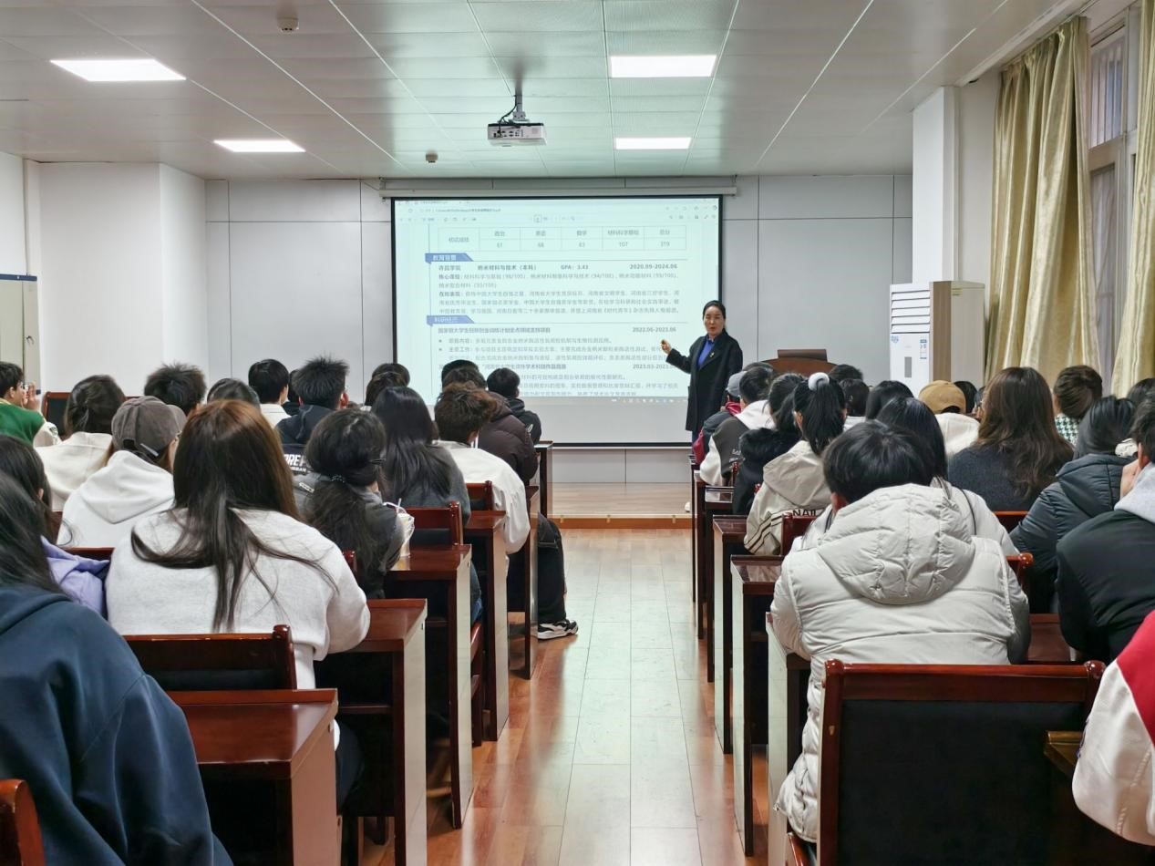 随后,张学燕副书记分享了我院2024届优秀毕业生张涵博的成长经历,在校期间,张涵博在求学实践、科研创新、志愿服务等方面不断提升,在校学习科研和社会实践事迹突出,曾获得中国大学生自强之星、河南省大学生党员标兵、河南省文明学生、河南省三好学生、河南省优秀毕业生、国家励志奖学金、中国大学生自强奖学金等荣誉。张学燕副书记鼓励在场同学以张涵博学长为榜样,在未来的学习和科研道路上,胸怀理想、脚踏实地、勇于探索、不怕挫折,将科学家精神融入个人的成人成才中。