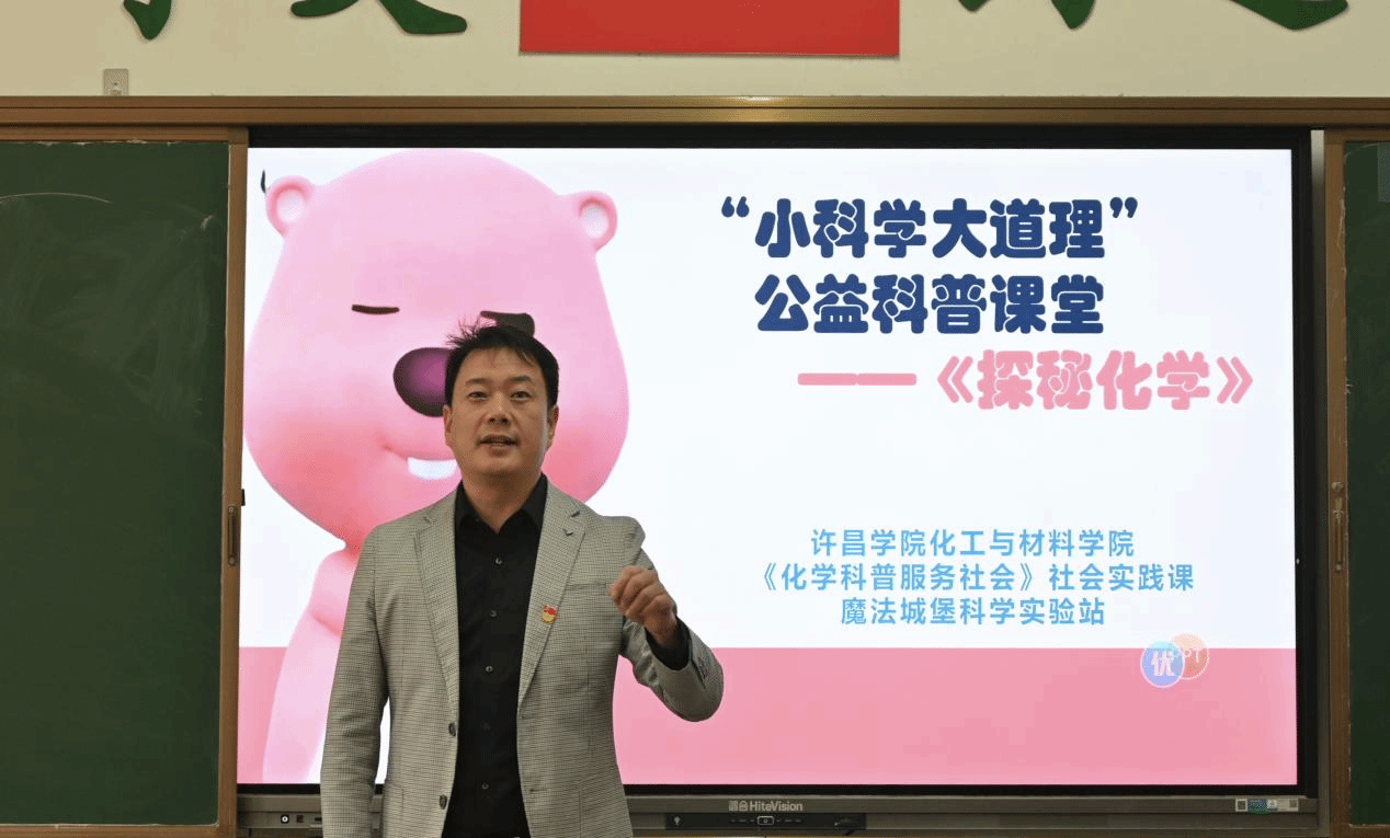2025年10月24日下午,许昌市教育局牵头,联合我院打造的“科学实践”系列公益活动在许昌市兴业路小学正式启动。本次活动由化工与材料学院党委副书记张学燕带队,教工第二党支部书记兼应用化学系主任韩培林博士担任主讲教师。