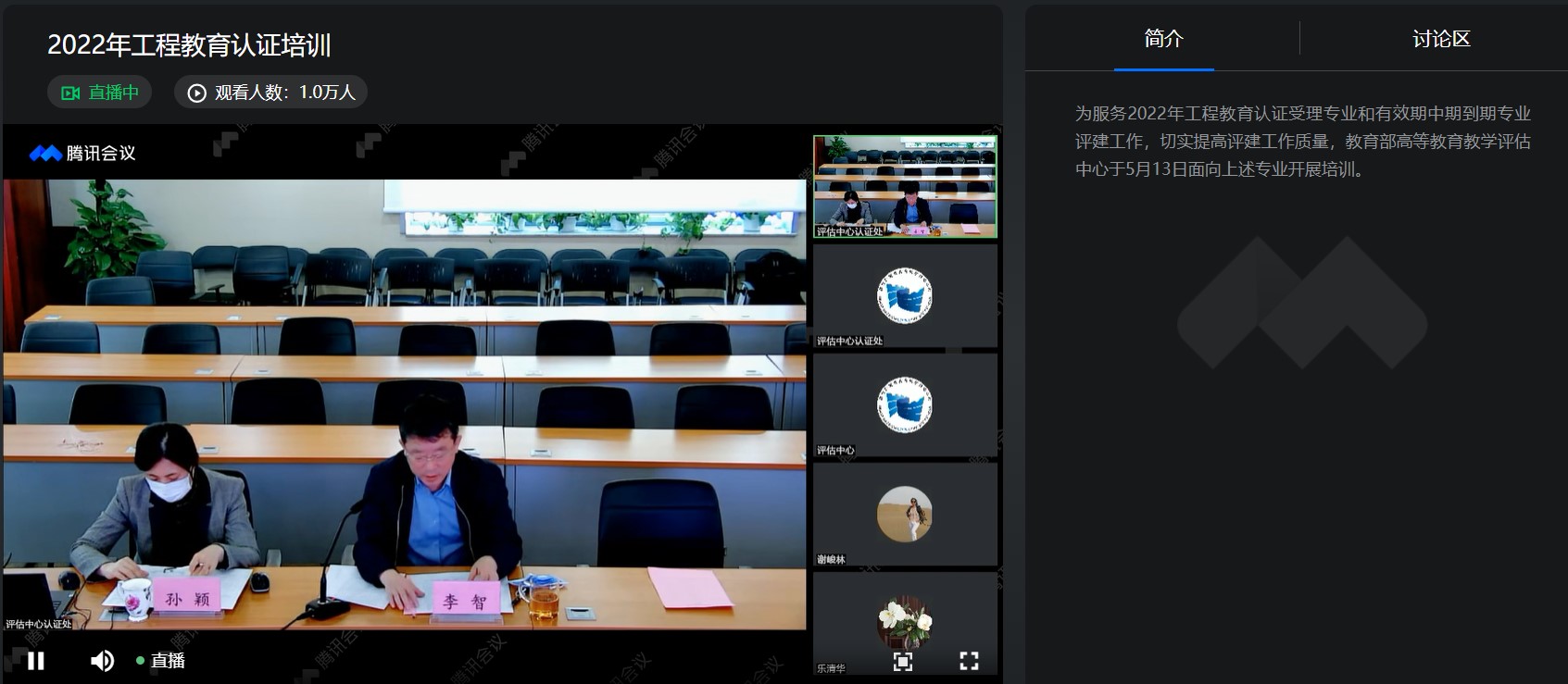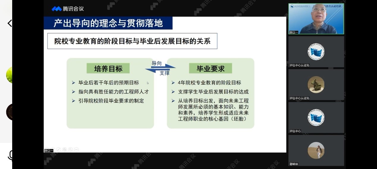 5月13日上午8:30开始,2022年教育部教育教学评估中心工程教育认证培训以在线方式举行,我院组织各系教师通过腾讯会议全程观看了本次会议直播。