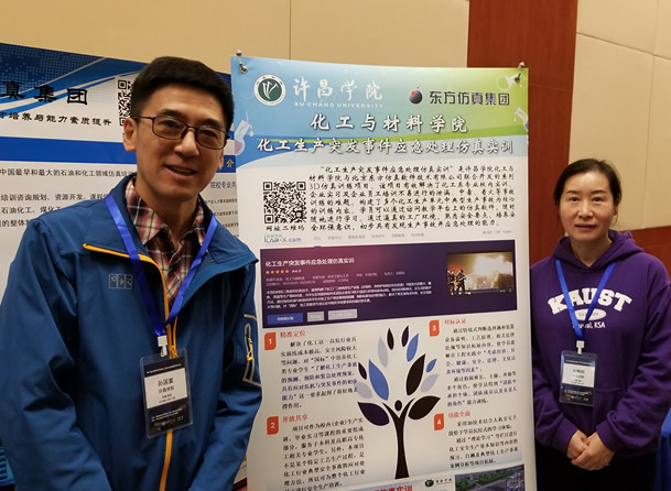 我院徐静莉、孙国富两位老师参加了本届大会,并借此机会将我院的河南省示范性虚拟仿真项目-“化工生产突发事件应急处理训练”进行了展示,期间得到了天津大学夏淑倩教授、浙江工业大学艾宁教授、北京化工大学丁忠伟教授的指导。作为唯一一个高校成果展板,吸引了包括北京化工大学、大连理工大学、桂林理工大学、安阳工学院、信阳师范学院等院校代表的关注,表示今后将进一步深入交流并考虑采用我们的仿真项目辅助教学。
