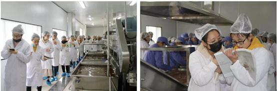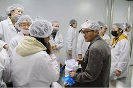 参观生物科技厂区▲ 带队教师指导学生准备进入饮片车间▲
