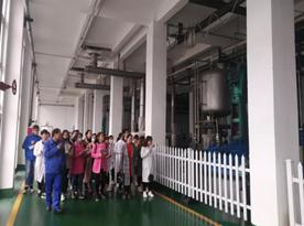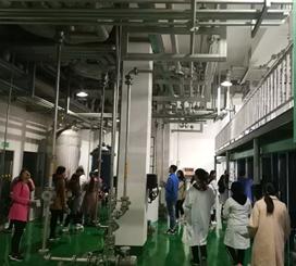 11月14日上午,刘超副总经理亲自安排公司技术工程师带领同学们分组参观厂区,仔细讲解工业化生产运行流程,公司还特别开放了中试车间、研发实验室让同学们现场体验研发工作模式和环境,车间设备、管道及研发过程。