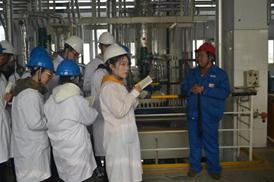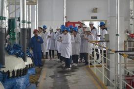 同学们参观对羟基苯甘氨酸的生产车间并与工程师进行交流▲