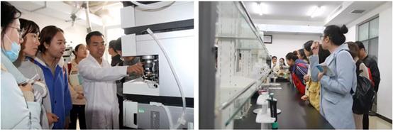 在参观完GMP固体制剂车间后,吕亚军主任又带领同学们参观了企业的研发中心。她为同学们悉心地讲解了药物研发的基本流程及药物质量检测的主要内容和注意事项。