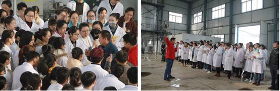 傅收总经理首先介绍了豫辰公司主营产品及生产情况、发展规划和实习安排。亲自为学生分组讲解阿托伐他汀M4生产工艺,为同学上了一堂生动的制药工艺学课。