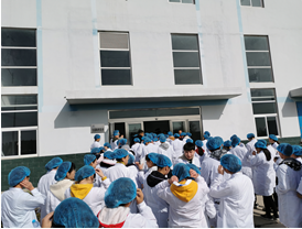 学生认真聆听工程师讲解中药饮片生产工艺▲ 带领学生进入饮片车间参观▲