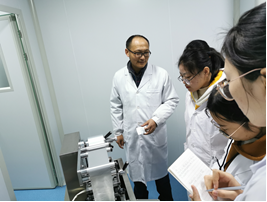带领学生参观无菌制剂生产车间▲ 介绍无菌注射用水的纯化工艺▲