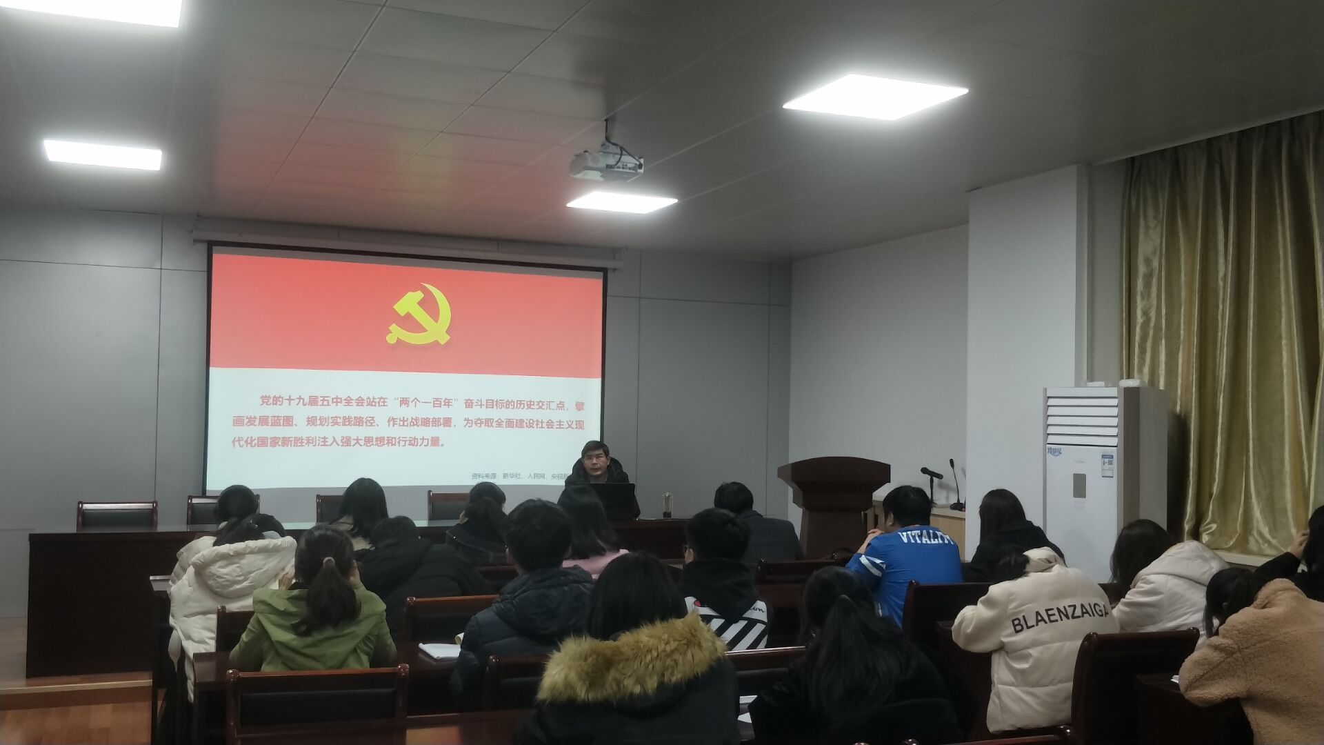 2020年12月4日,我院在化工楼S302会议室举行第六十四期入党积极分子培训班第八讲,主讲人为我院党委书记许志红,此次培训是以“十九届五中全会精神解读”为主题展开叙述,全体入党积极分子参会。