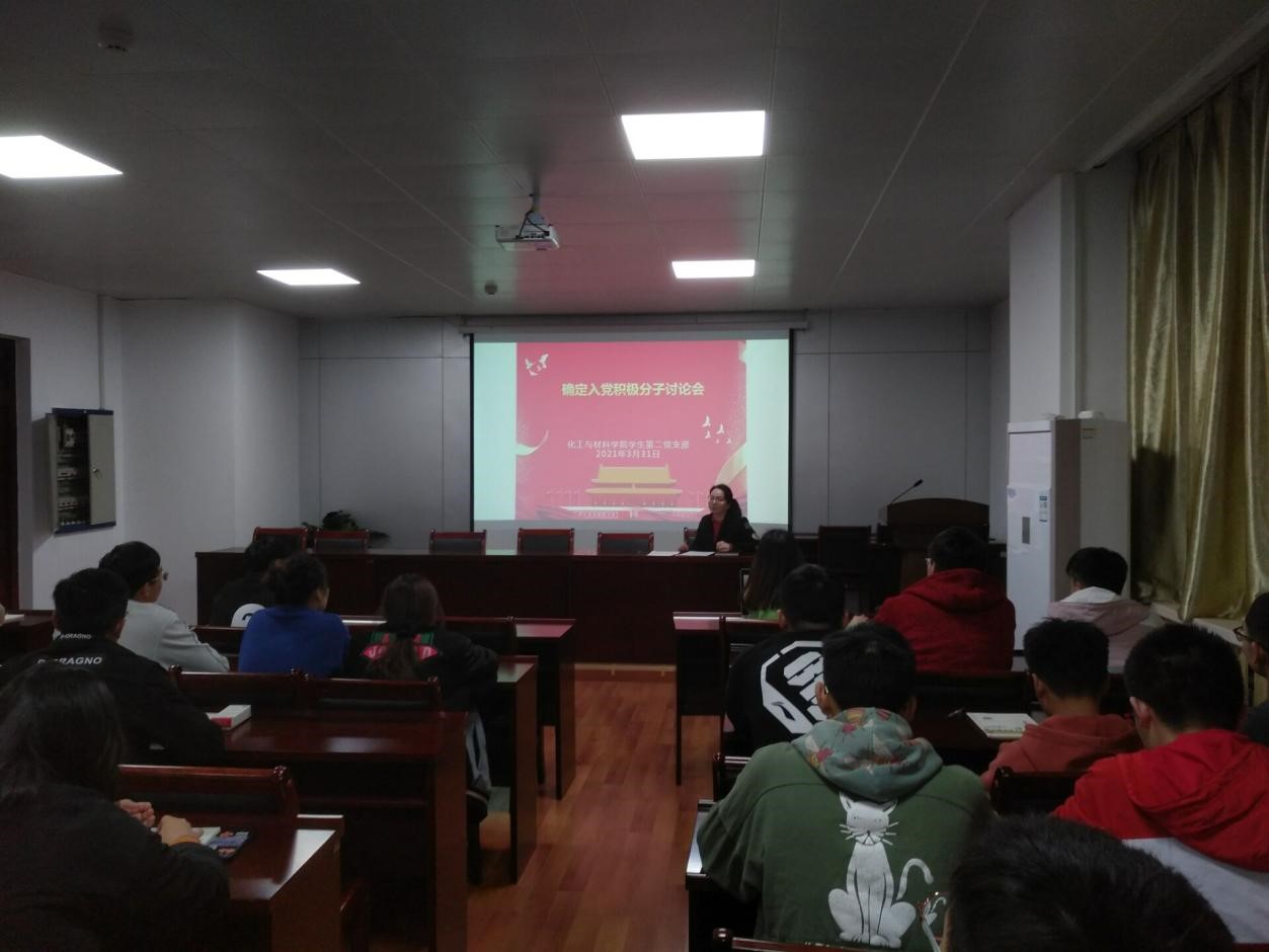 2021年3月31日,我院学生第二党支部在化材楼S302会议室召开确定入党积极分子讨论大会,此次会议由学生党支部书记张东琳老师主持,支部全体党员参与讨论。