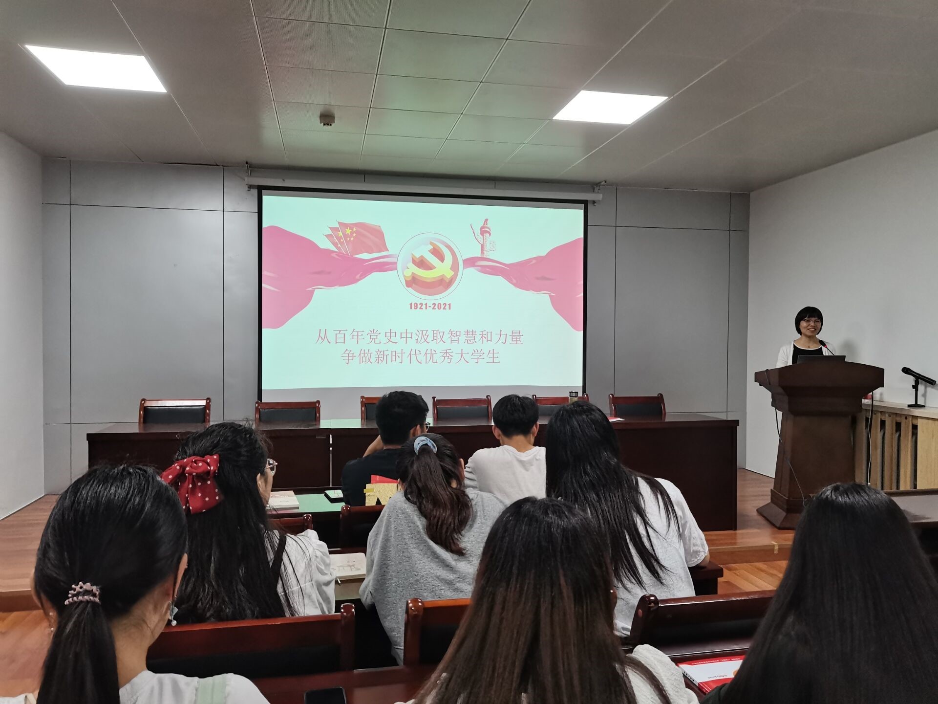 2021年5月18日下午7:00,我院在化工楼S302会议室举行第六十五期入党积极分子培训班第四讲,主讲人为我院张艳鸽院长,此次培训以“从百年党史中汲取智慧和力量,争做新时代优秀大学生”为主题,全体入党积极分子参会。