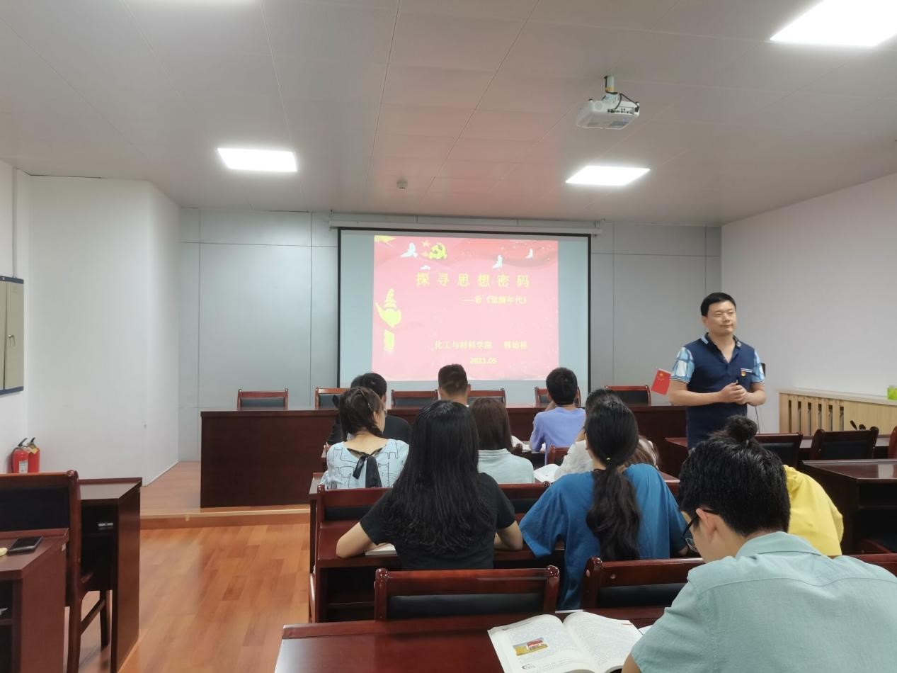 2021年5月30日下午,我院在化工楼S302会议室举行第六十五期入党积极分子培训班第六讲,主讲人为我院韩培林老师,此次培训是以“观看《觉醒年代》 探寻党建思想密码”为主题展开叙述,全体入党积极分子参会。
