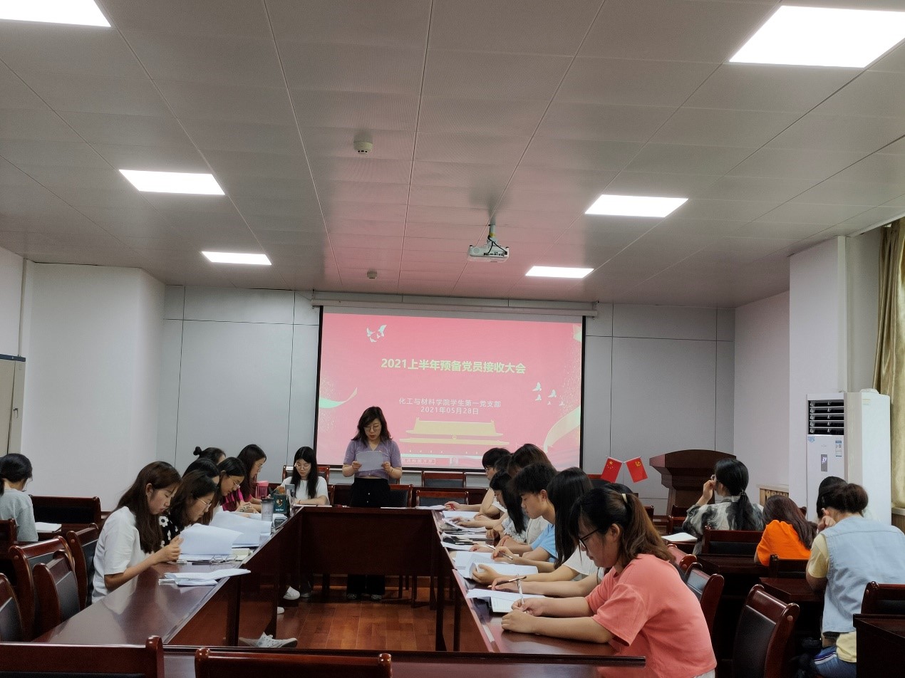 2021年5月28日,我院学生第一党支部在化材楼S302召开了2021上半年预备党员接收大会,学生第一党支部书记胡泊老师及全体学生党员、本期发展对象参会。