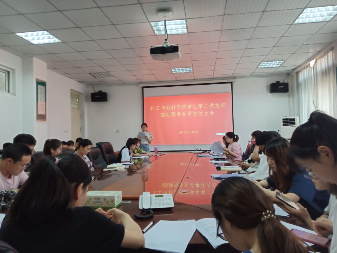 2020年5月28日,我院学生第二党支部在A4楼三楼会议室举行第65期预备党员接收大会,参加本次大会有化工与材料学院学生第二党支部书记张东琳老师及支部学生党员。