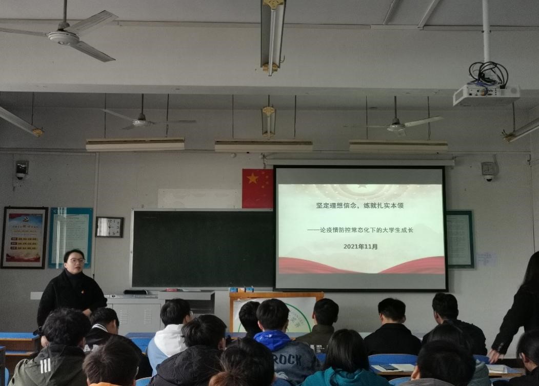 2021年11月19日,我院于启智楼207教室举行第六十六期入党积极分子培训班第四讲,主讲人为我院学生第二党支部书记张东琳,此次培训以“坚定理想信念,练就扎实本领——论疫情防控常态化下的大学生成长”为主题,全体入党积极分子参会。