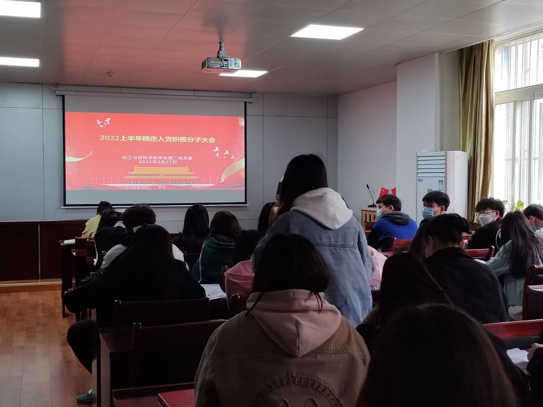 2022年3月27日,我院学生第二党支部在化工楼S302召开2022年上半年入党积极分子讨论确定大会,此次会议由学生第二党支部书记张东琳老师主持,支部全体党员参与讨论。