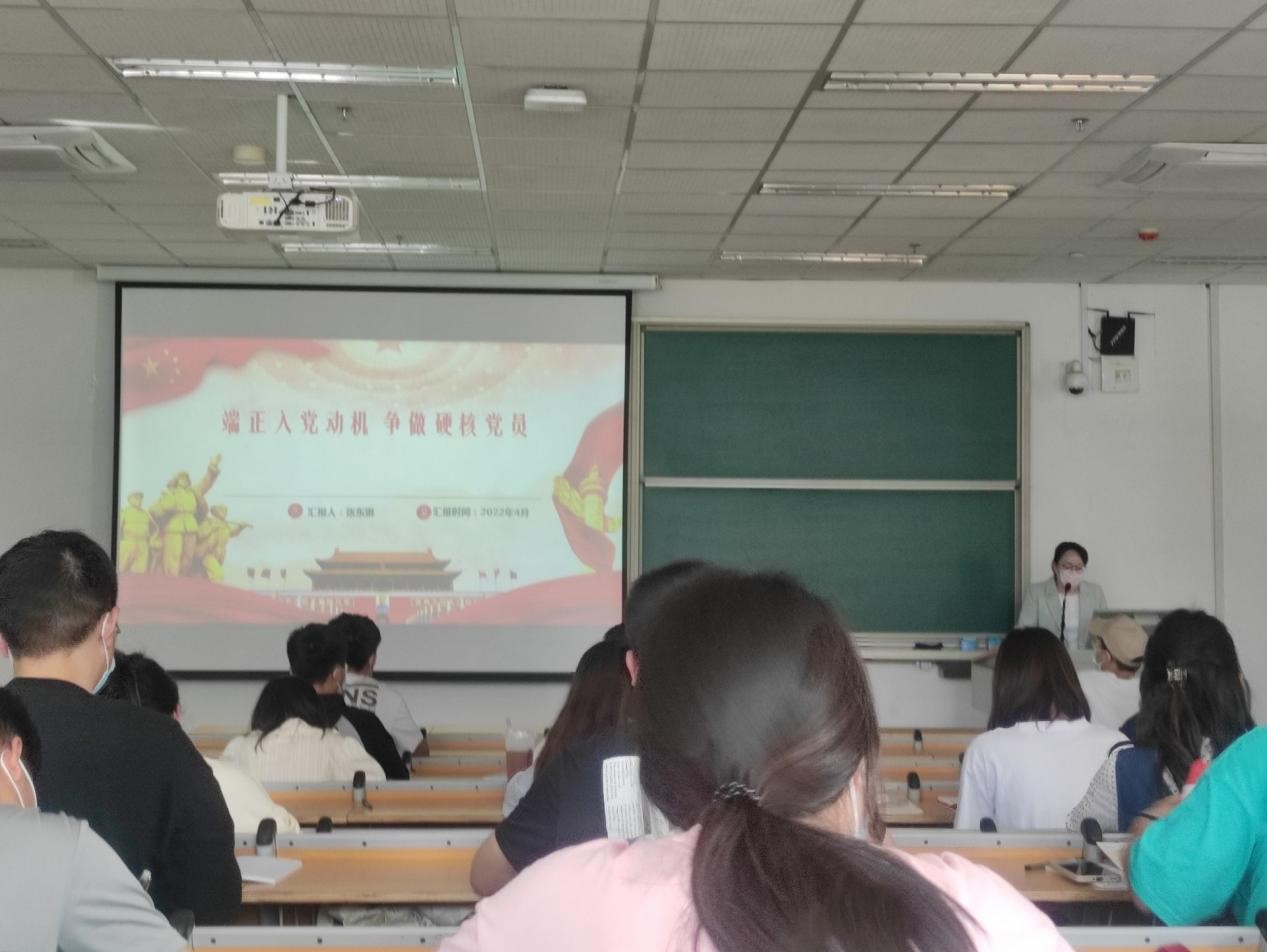 2022年4月22日下午3点50,我院于E楼209会议室举行第六十七期入党积极分子培训班第二讲,主讲人为我院学生第二党支部书记张东琳老师,此次培训以“端正入党动机,争做硬核党员”为主题开展,全体入党积极分子参加。