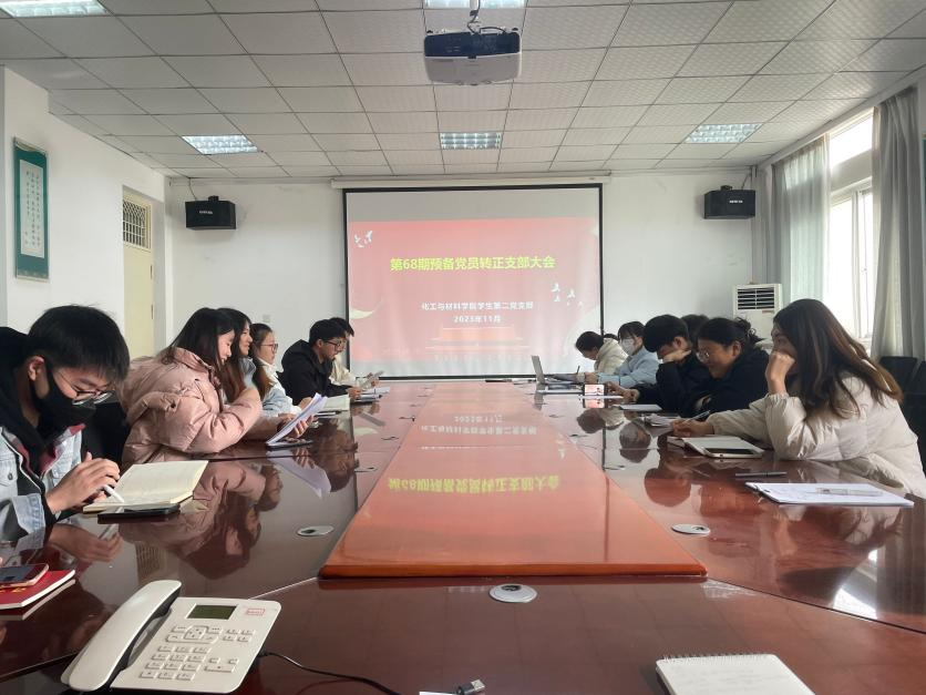 2023年11月30日,我院学生第二党支部在A4-301会议室召开了第68期预备党员转正大会,党支部书记张东琳老师及全体学生党员参加会议。