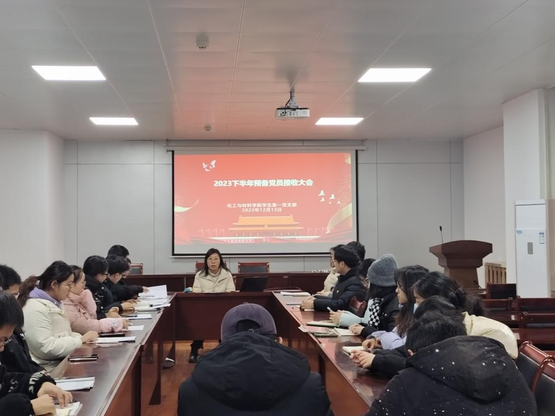 2023年12月13日,我院学生第一党支部在化材楼S302会议室召开2023年下半年预备党员接收大会,此次会议由学生第一党支部书记胡泊老师主持,全体学生党员、本期拟接收对象参会。