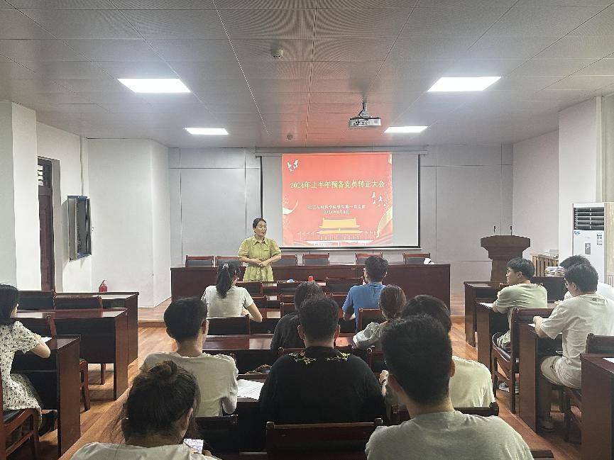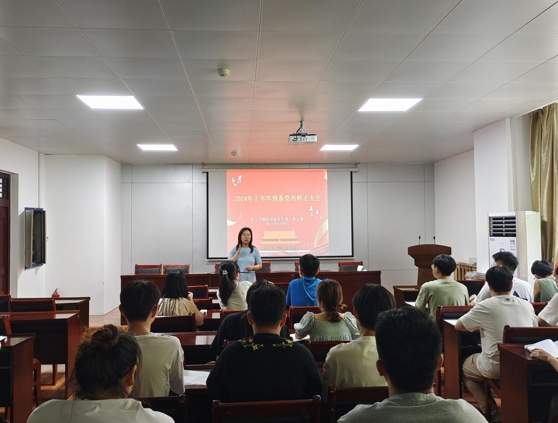 2024年6月8日,我院学生第一党支部在化材楼S302召开了第69期预备党员转正大会。支部联点领导、院党委副书记张学燕参加会议,党支部书记胡泊老师及支部全体党员参会。
