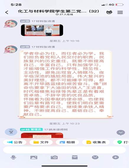 学院全体党员观看党课后纷纷表示:了解在这个抗击疫情的特殊时期,高校基层党组织风雨同舟,万众一心,无数师生党员活跃在一线,舍小家顾大家,他们是最美的逆行者!作为青年一代,我们应该用责任与担当谱写时代青春篇章,为实现国家富强,民族振兴贡献力量!