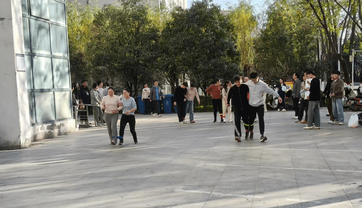 其中“两人三足”考验队友间的步伐默契,参赛教师相互搀扶、喊着口号同步向前;“夹玻璃球”需屏息凝神控制手部力道,围观者忍不住为选手轻声加油;“夹纸竞走”项目中,老师们小步挪动间憨态可掬的模样引得现场笑声不断。这些项目有的极具技巧性,有的侧重团队配合,五十余名老师自由组队、积极应战,现场欢快的笑声、热烈的叫好声与加油声此起彼伏,热闹的比赛氛围感染着每一个人。