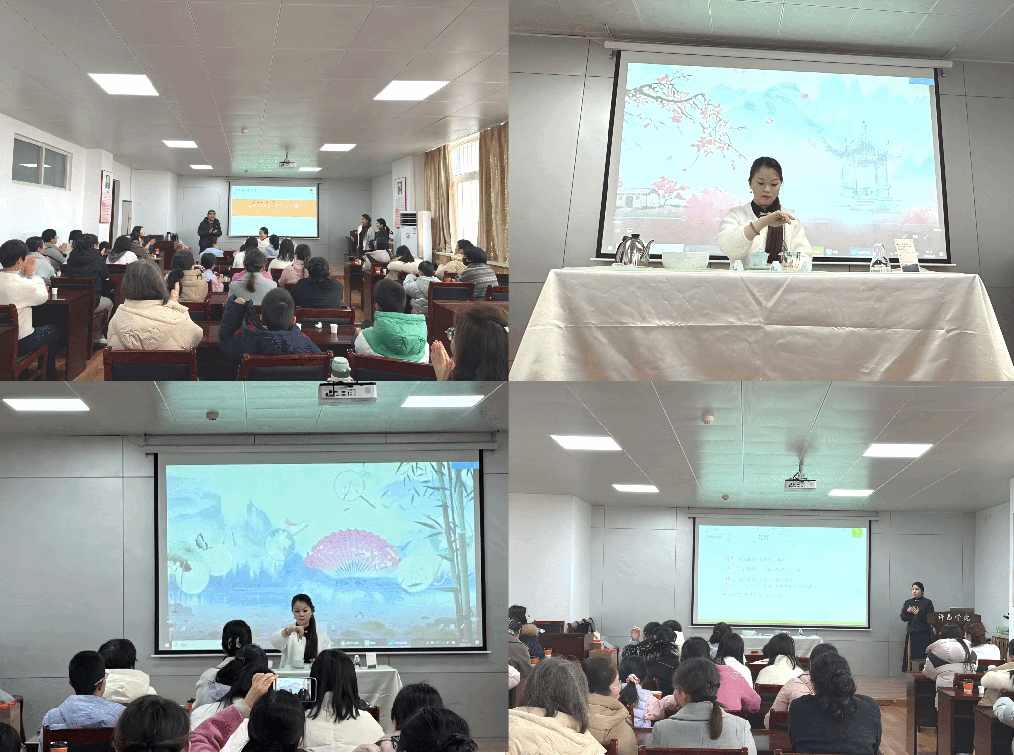 开展“品茶韵幽香 煮茶话巾帼”主题茶艺培训活动。活动开幕式上,许志红书记代表院领导班子向全体女教工致以节日的祝贺和诚挚的问候。茶艺培训活动中,茶艺师进行了行云流水、优雅从容的茶艺表演,让大家沉浸式感受到了传统茶艺的独特魅力,随后从茶叶的起源、茶叶的发展、茶叶的分类及基本特性和健康饮茶等方面进行了讲解。
