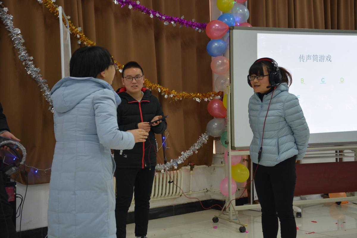 游戏环节设置了双人“爆”气球接力、传声筒、你比划我猜等内容,大家一改往日的沉闷和严肃,玩的乐此不疲,在你比划我猜中参与者手脚并用,把观众逗的合不拢嘴,化工院到处都洋溢着欢乐祥和的氛围。