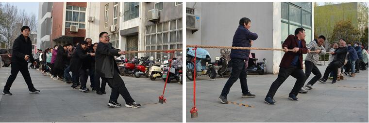 在最后一个团体运动“拔河”项目进行时,男老师们特意让另一“半边天”们站在队尾,他们拼尽全力把绳索往自己的方向拉过去,女老师们不甘示弱,也奋力地“拔”,两边队伍齐声为自己呐喊助威,情绪激昂。