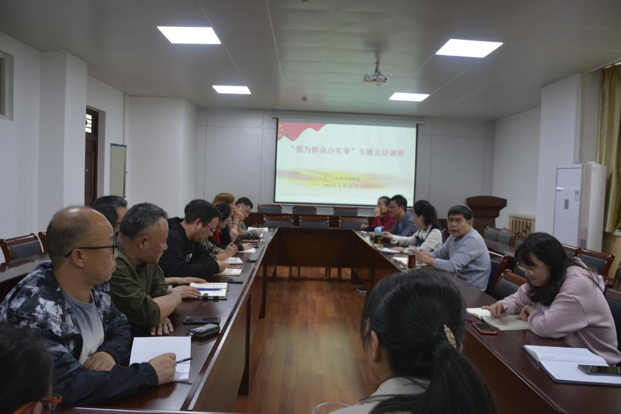 2021年4月30日下午,为深入开展党史学习教育,做到“悟思想、办实事、开新局”,我院举办“党史学习教育--我为群众办实事”专题调研活动,院党委书记许志红、党委副书记张学燕及材料科学与工程、纳米技术与技术、新能源材料与器件等三个专业的专职教师参加调研会,会议由许志红同志主持。