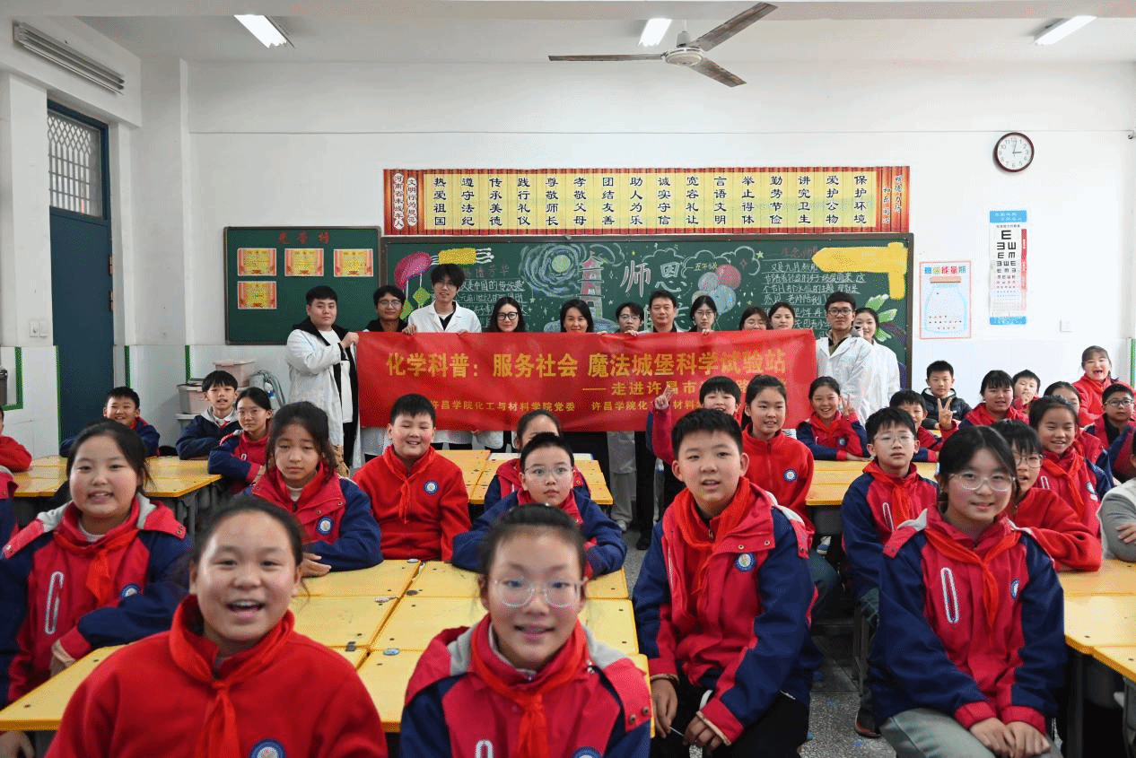为深入贯彻国家关于加强新时代科学普及工作、提升全民科学素质的重要部署,2025年10月24日,许昌市教育局联合我院共同发起并组织开展“科学实践”系列科普活动。该活动第一站首先在许昌市兴业路小学启动,由化工与材料学院党委副书记张学燕带队,教工第二党支部书记韩培林老师担任主讲教师。