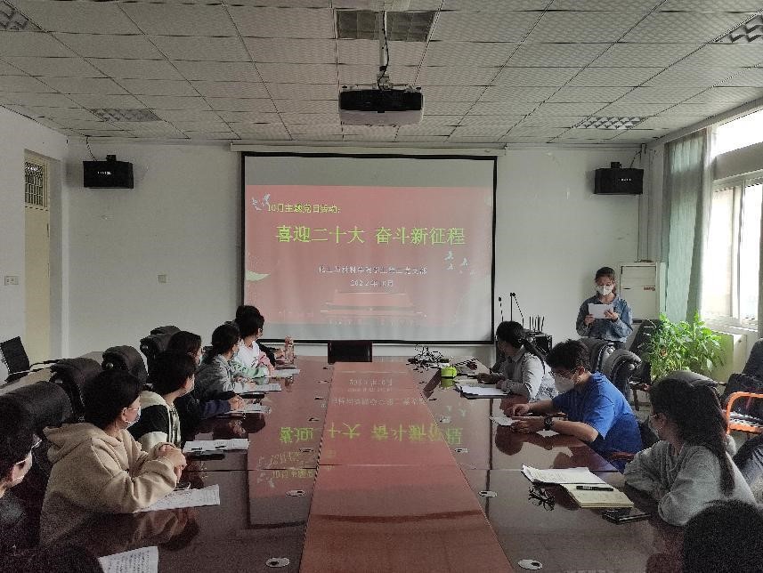 2022年10月9日,我院学生第二党支部在A4-301会议室召开了“喜迎二十大,奋斗新征程”的主题党日活动。学生第二党支部书记张东琳老师及全体学生党员参会。