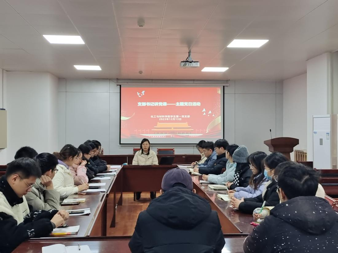 2023年12月13日,我院学生第一党支部在化材楼S302会议室召开“支部书记讲党课”主题党日活动。学生第一党支部书记胡泊老师及全体在校学生党员参会。