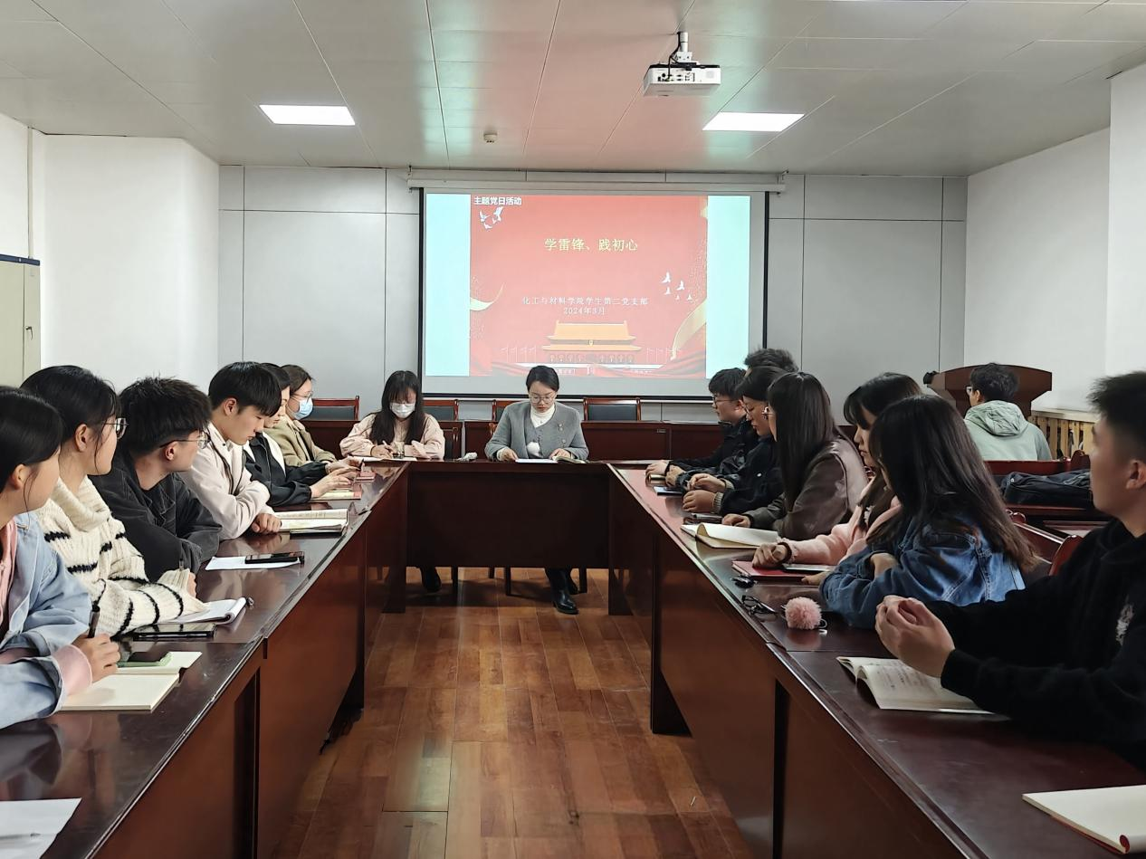 为培养全体党员良好的道德品质和社会责任,持续发扬雷锋精神,2024年3月21日,我院学生第二党支部在化工与材料学院S302会议室开展“学雷锋、践初心”的主题党日活动,党支部书记张东琳老师及支部全体学生党员参会。