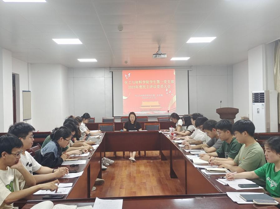 5月31日,我院学生第一党支部在化材楼S302会议室召开2023年度民主评议党员大会,此次会议由学生第一党支部书记胡泊老师主持,全体学生党员参加本次会议。