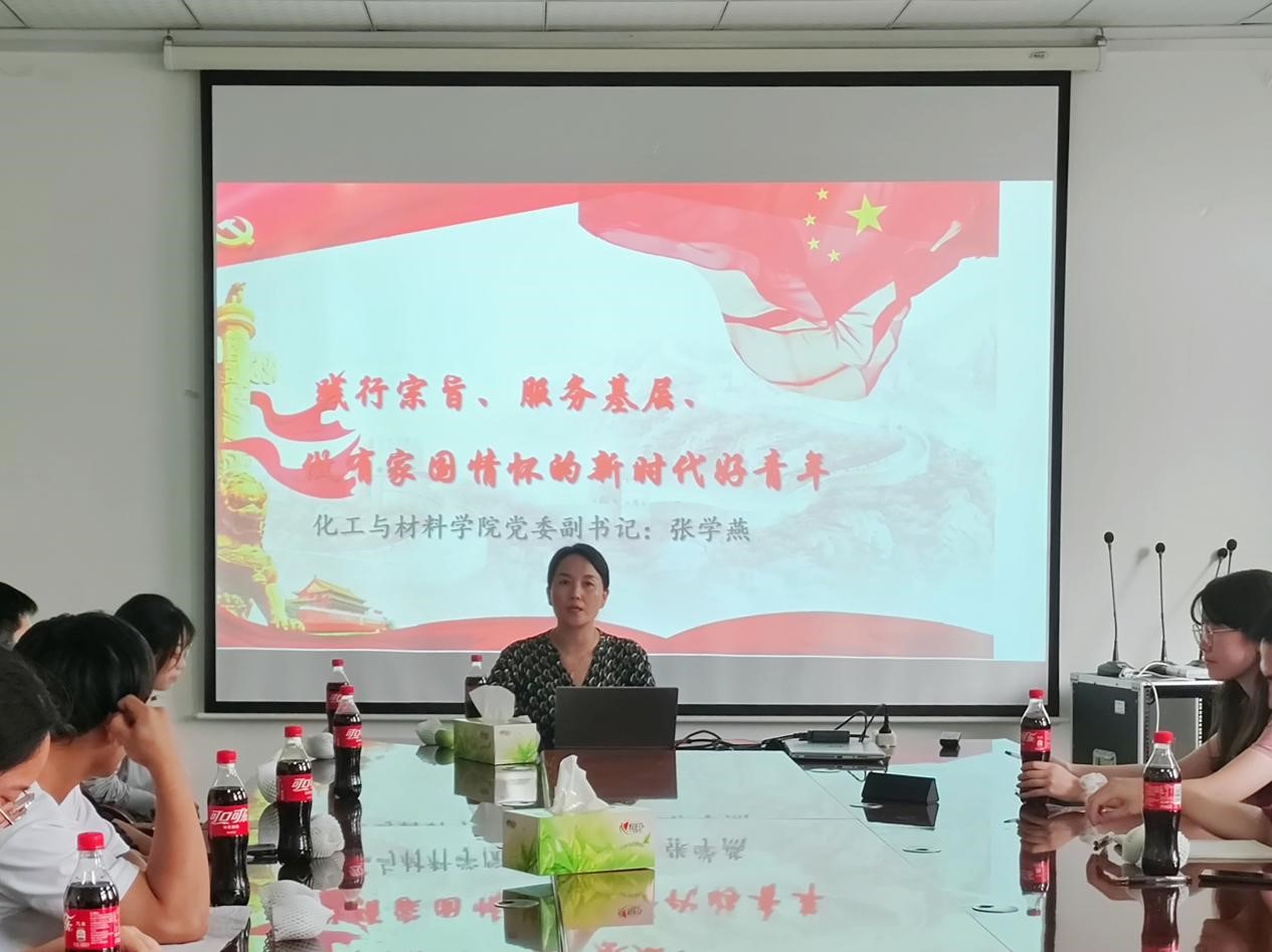 2023年8月17日下午,我院于蕴韬楼A4-301会议室举行“践行宗旨,服务基层,做有情怀的新时代好青年”主题教育专题党课,主讲人为我院党委副书记张学燕,在校学生参加。