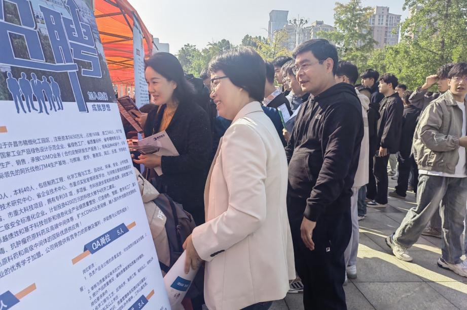 2023年10月21日,由许昌市人力资源和社会保障局、许昌市总工会、许昌学院联合主办的“2023年秋季双向选择洽谈会”在我校弘毅广场举行。化工与材料学院积极宣传,鼓励并组织我院即将步入社会的大学生积极参加本次双选会。院党委书记许志红、院长张艳鸽、党委副书记张学燕亲临双选会现场予以指导。
