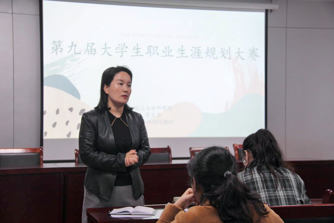 2021年10月26日晚7:00,我院于化材楼s302会议室成功举办第九届大学生职业生涯规划大赛。本次大赛邀请了院党委副书记张学燕、团委书记于笑寒、19级辅导员赵灿、20级辅导员张东琳、20级班导师杨启,候玉娇,朱志业作为评委。9名选手参赛。