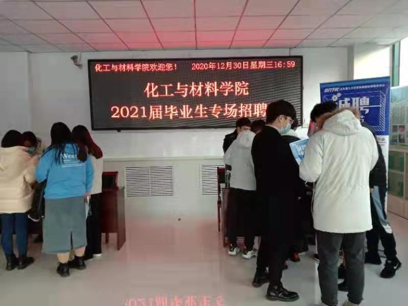 我院于2020年12月30日下午三点在化工楼召开2021届毕业生专场招聘会,院党委副书记张学燕、分团委书记兼17级辅导员于笑寒及就业专干张东琳老师参加此次招聘会。