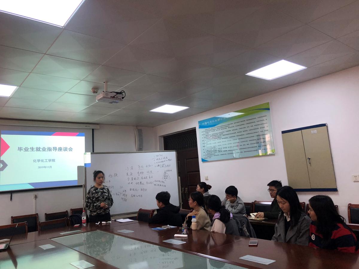 2019年11月11日,我院在化工楼W306召开毕业生就业指导座谈会。此次座谈会邀请2017届优秀毕业生赵轶担任主讲人,团总支书记易文翰、2020届毕业生辅导员胡泊以及2016级毕业生代表参加。