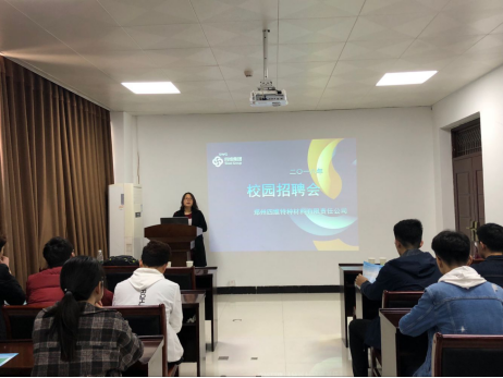 此次招聘的郑州四维特种材料有限公司是郑州四维集团旗下子公司,位于郑州新材料产业园区。通过PPT演示让同学们了解了公司概况,本次招聘的销售岗位为同学们就业观念的转变和就业渠道的拓宽提供了机会。