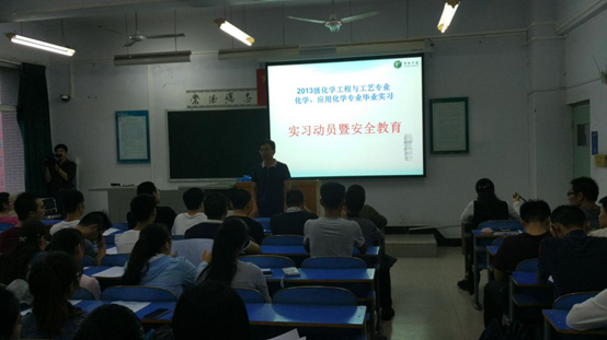 9月26日下午,化学化工学院于启智楼C楼507教室举行了2013级毕业实习生动员暨安全教育大会。党总支副书记张学燕,副院长向天成,许昌瑞达公司经理张惠,孙国富、张洪浩老师出席。13级及15级辅导员胡晶及我院13级全体学生参加动员大会。