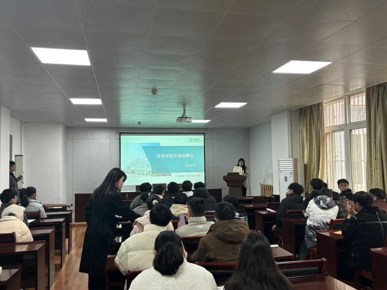 此次宣讲会,共邀请到河南德佰特机电设备制造有限公司和许绝电工股份有限公司两家企业。宣讲会上,公司HR通过播放宣传视频,对企业的发展历程、产品应用场景、生产及工作环境等方面进行了展示,并重点就企业文化、培训体系、招聘岗位、薪资待遇、晋升发展渠道等方面进行详细讲解。宣讲后,现场同学积极提问,与企业负责人互动交流。